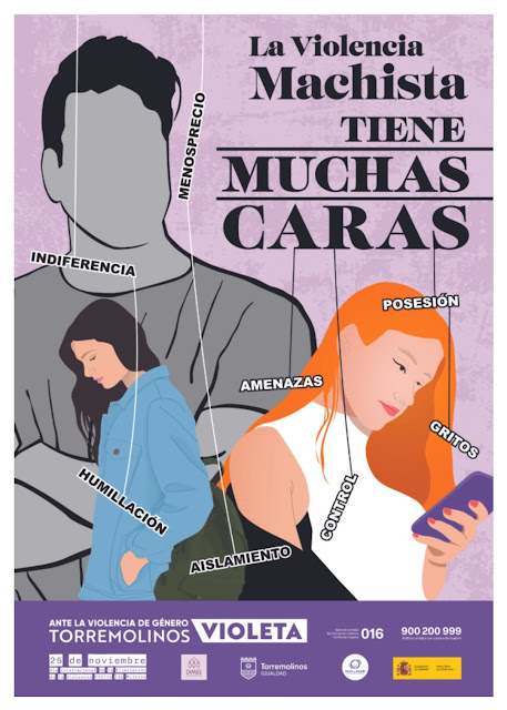El Ayuntamiento de Torremolinos ha preparado varias actividades para este día. Entre ellas esta campaña gráfica "La violencia tiene muchas caras". Podrás verla en las marquesinas de las paradas de autobús.
